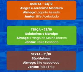 - Acompanhamentos: Arroz Branco, Arroz Integral e Feijão em caldo